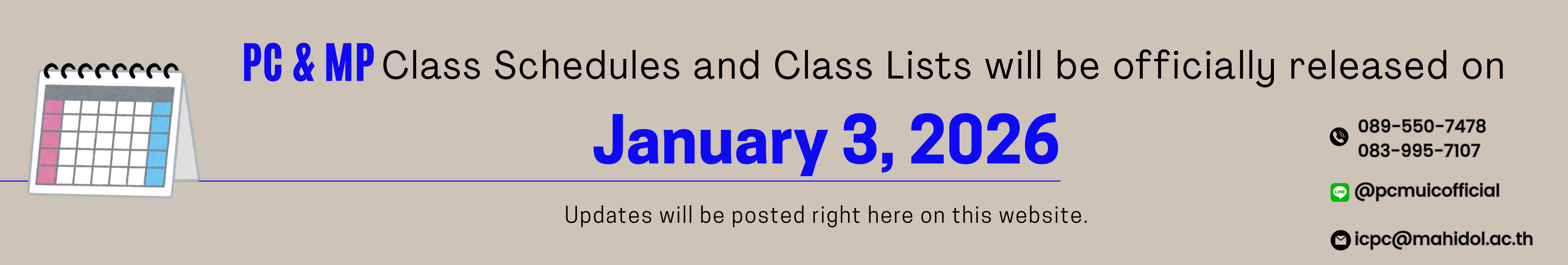 The Preparation Center for Languages and Mathematics (PC) at MUIC is offering scholarships for children of staff and faculty members at Mahidol University who are accepted to the program. Click to see more information.